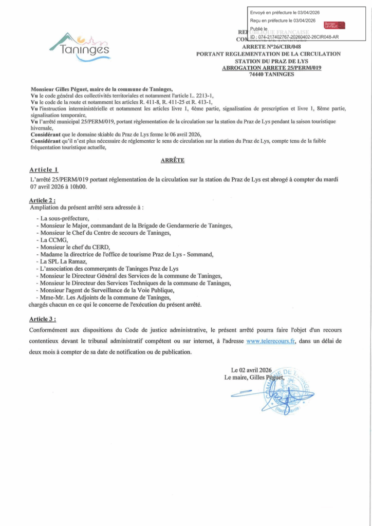 SENS DE CIRCULATION UNIQUE PRAZ DE LYS